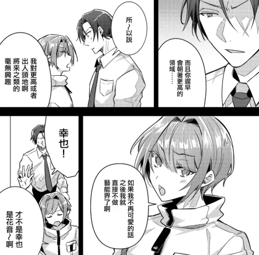 这时我们也可以窥得两个人之间的冲突:幸野只想作为可可爱爱的偶像待着这个行业里,恭介却希望幸野可以不出麻烦,安定地爬到更高的位置或是出人头地,可这样的艺能界,对执着在“可爱的自己”上的幸野来说不如不待。
